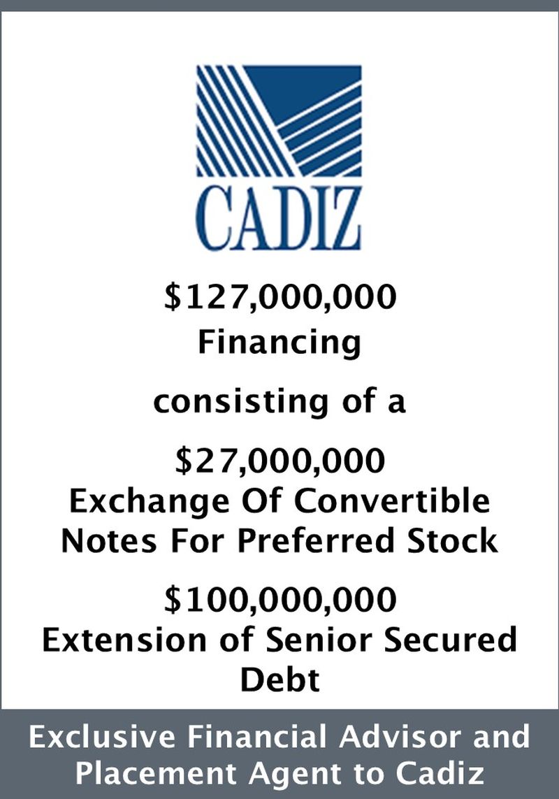 Armory has successfully closed numerous financing, merger and acquisition and restructuring advisory engagements over the last several years.