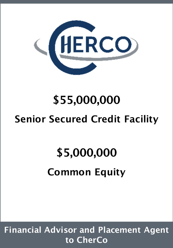 Armory Securities, LLC is pleased to announce that CherCo, LLC has completed a new financing consisting of a $55 million senior secured term loan and $5 million of equity. Armory served as financial advisor and placement agent to CherCo for the transaction.